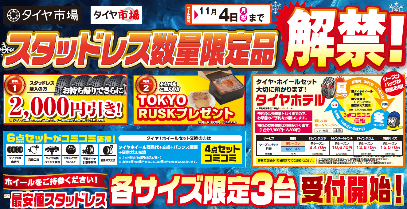 印西市で冬タイヤをお探しでしたら、車検のコバック千葉ニュータウン店が断然お得です!