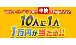キャンペーン期間中、PC・スマホのWEBサイトから車検のご予約いただくと、抽選で10人に1人1万円が当たります!2025年12月末までに入庫車両限定です。
