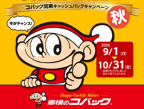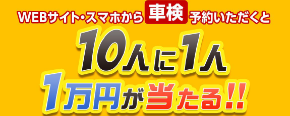 10月31日までに車検のご予約を頂きますと抽選で10人に1人1万円があたります!