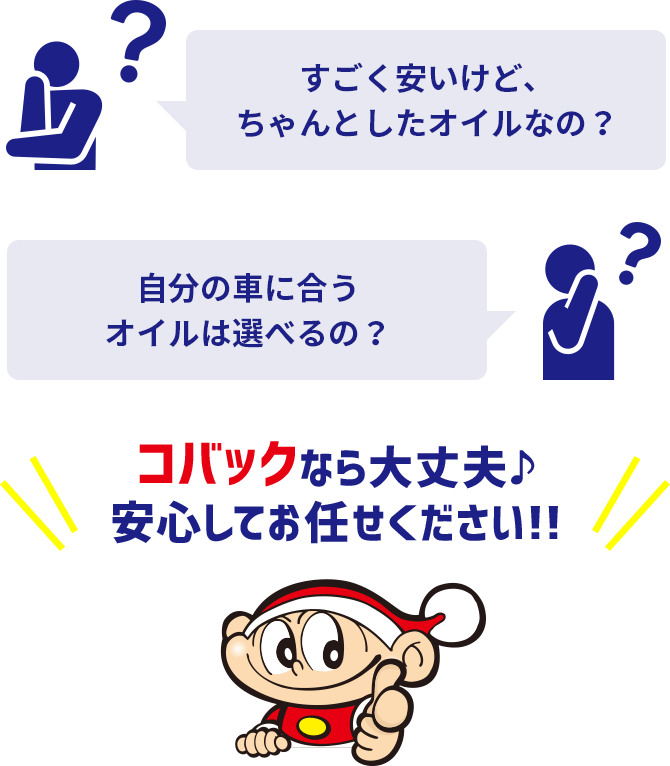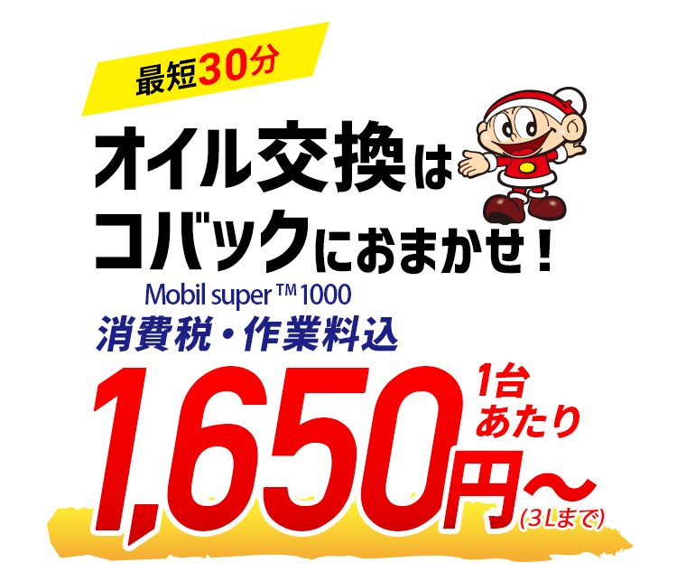 コバックならオイル交換1台1,650円~!