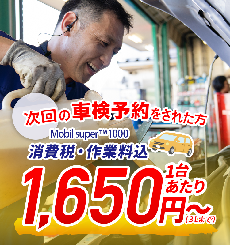 車検のご予約を頂いたお車なら、車検までのご予約期間中いつでも3ℓまで1台1,650円!